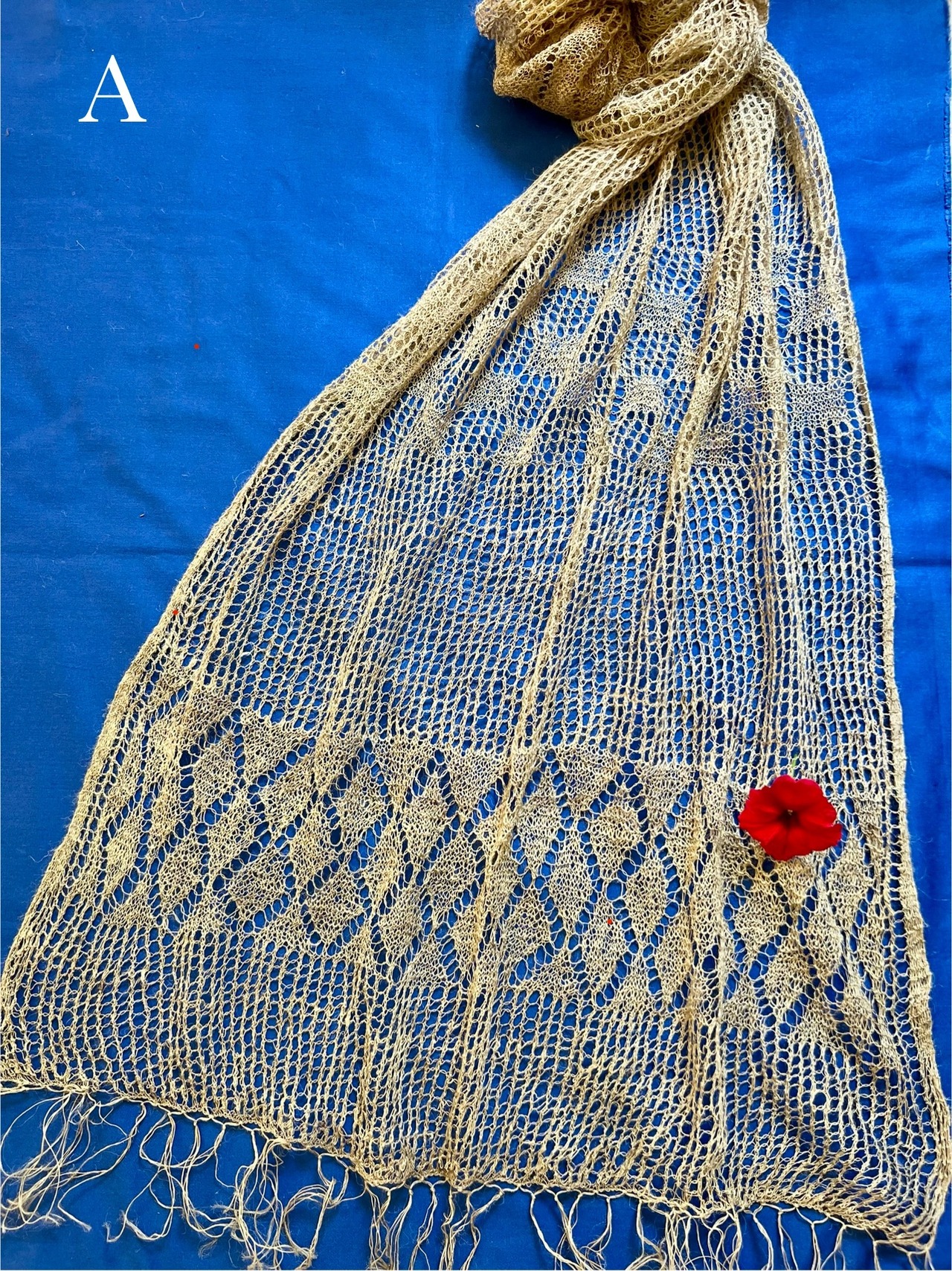 【大判】ヒマラヤ産 手紡ぎ・手編みのイラクサショール (ネパール)
